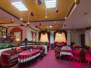 Просторный зал бильярдного клуба, оформлен в венецианском стиле: мягкие диваны классической формы и высокие барные стулья бордового цвета, в тон подобранные скатерти, портьеры и ковровое покрытие. В качестве декора дизайнеры использовали картины с изображением красивых пейзажей знаменитого итальянского города - Венеции.