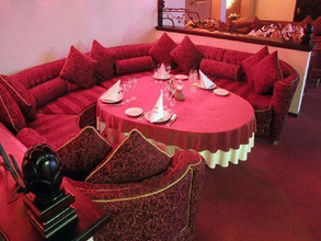 Из напитков для гостей подают морсы, свежевыжатые соки, чай, кофе, минеральную и газированную воду, разливное и бутылочное пиво, белое, красное и игристое вино, алкогольные и безалкогольные коктейли, коньяк, ликеры, водка, вермут, джин, самбука, абсент.